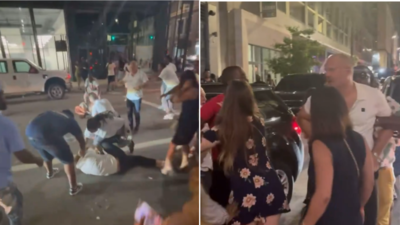 In a disturbing video footage from downtown Cincinnati, a man and a woman can be seen violently attacked during a